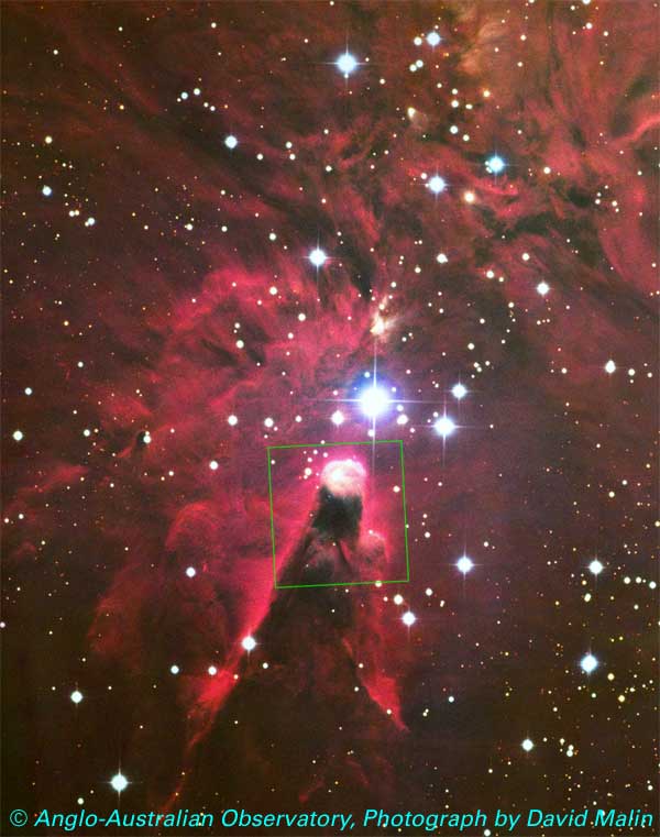 Cone Nebula with Outline of ACS Image (ground-based image).