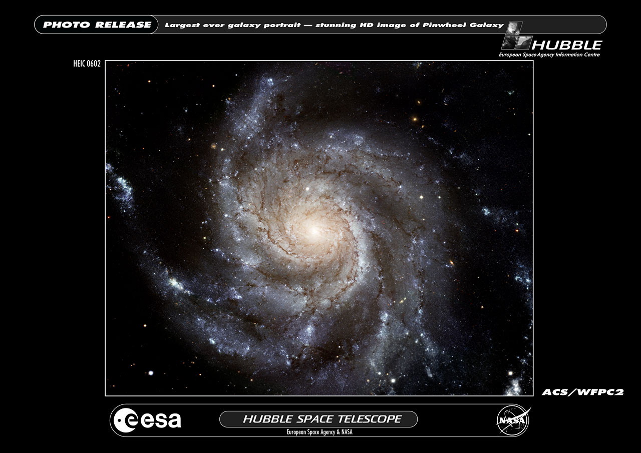 This new Hubble image reveals the gigantic Pinwheel galaxy, one of the best known examples of "grand design spirals", and its supergiant star-forming regions in unprecedented detail. The image is the largest and most detailed photo of a spiral galaxy ever taken with Hubble.