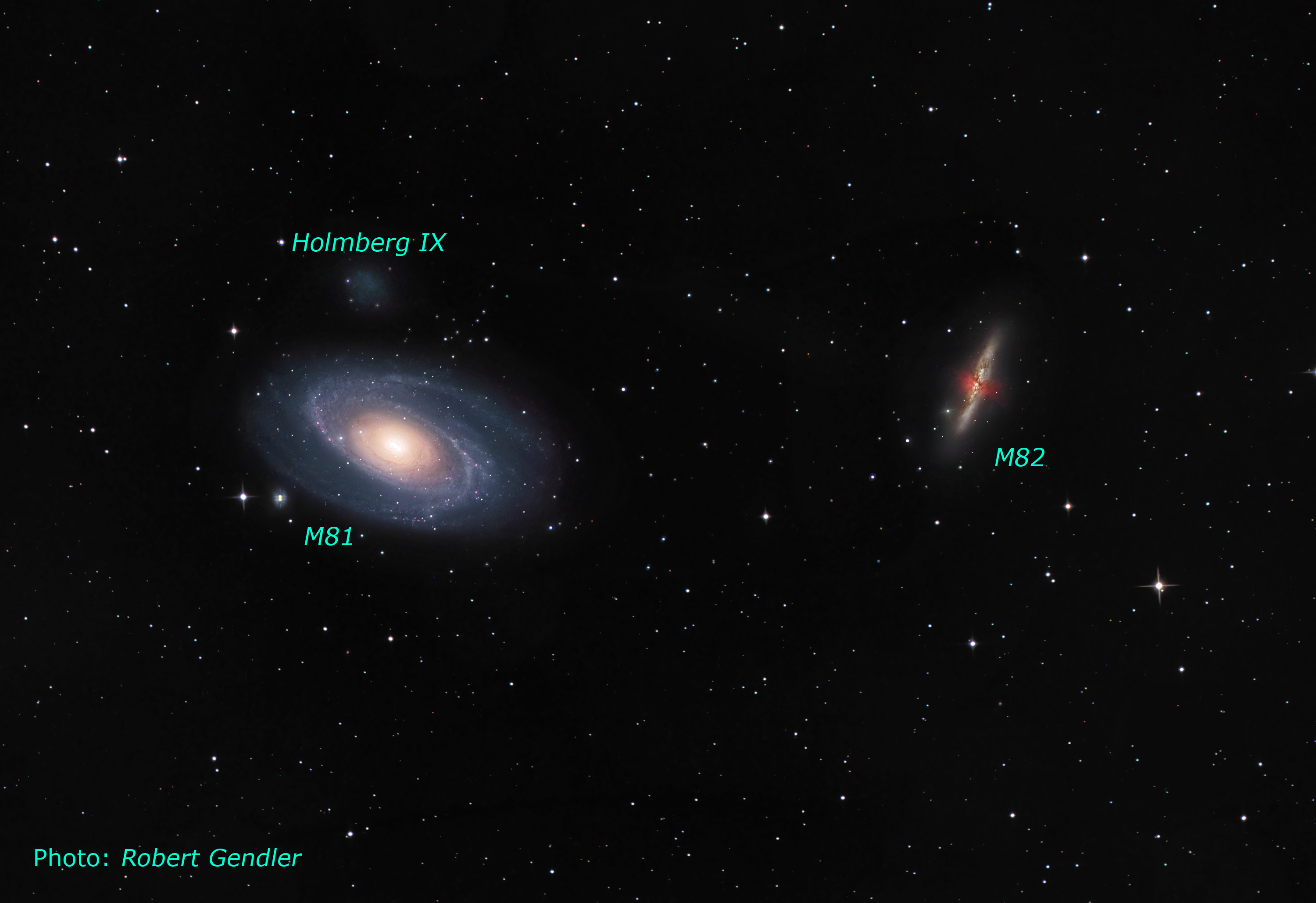 This wide-angle image taken by astrophotographer Robert Gendler shows the amazing duo of Messier 81 (right) and Messier 82 (left). These two mighty galaxies in the Plough (Ursa Major) belong to some of the most famous and beloved galaxies known to amateur astronomers.
