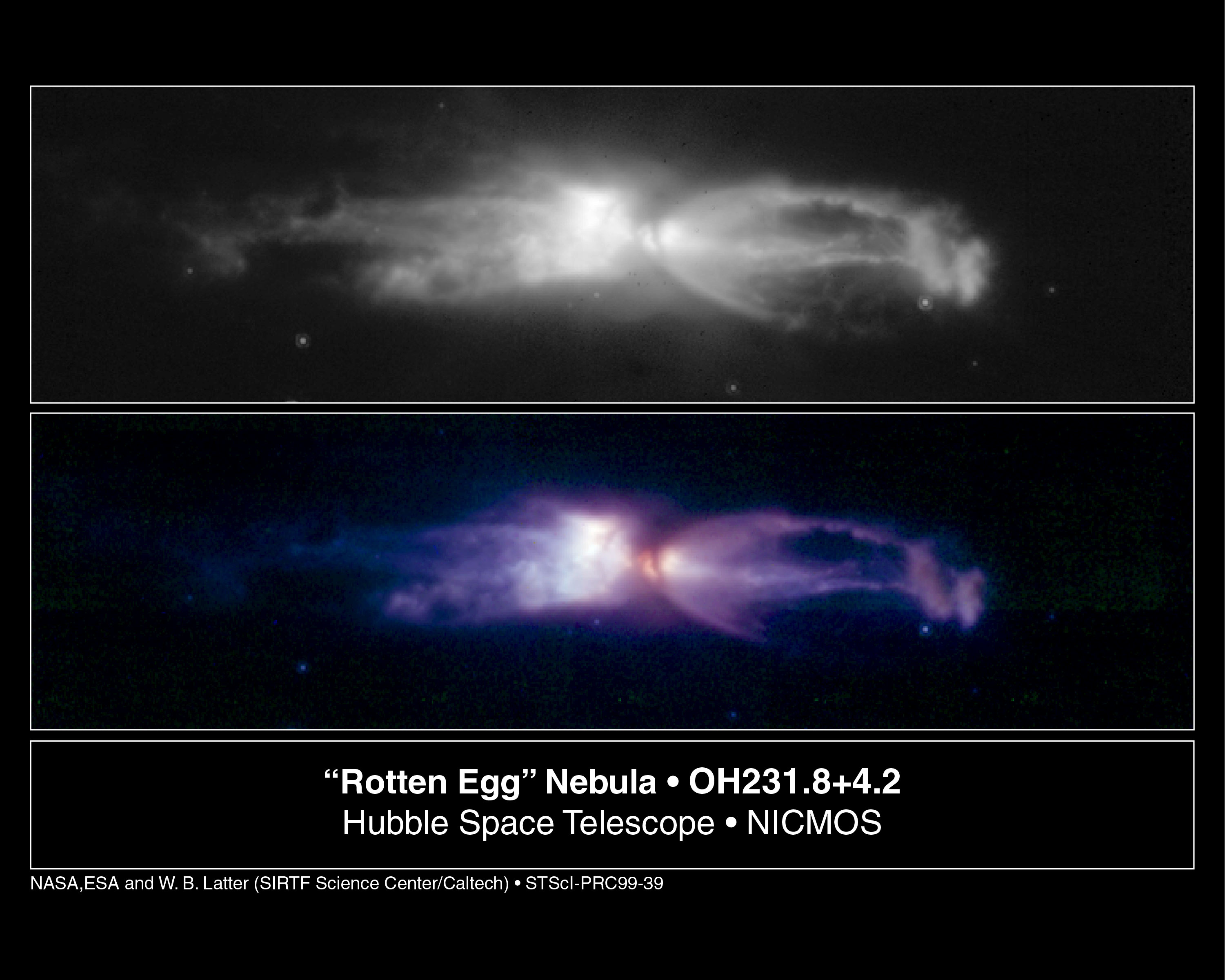 The object shown in these NASA/ESA Hubble Space Telescope images is a remarkable example of a star going through death throes just as it dramatically transforms itself from a normal red giant star into a planetary nebula. This process happens so quickly that such objects are quite rare, even though astronomers believe that most stars like the Sun will eventually go through such a phase.