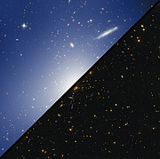 Resembling a swarm of flickering fireflies, this beautiful galaxy cluster glows intensely in the dark cosmos, accompanied by the myriad bright lights of foreground stars and swirling spiral galaxies. A1758N is a sub-cluster of Abell 1758, a massive cluster containing hundreds of galaxies. Although it may appear serene in this NASA/ESA Hubble Space Telescope image, the sub-cluster actually comprises two even smaller structures currently in the turbulent process of merging.