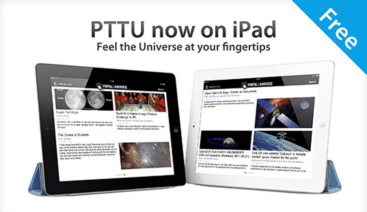 If you wish to test how much cosmic knowledge the new, lighter and slimmer iPad can access at any point in spacetime, this is the app for you! The Portal to the Universe aggregates news, blogs, video podcasts, audio podcasts, images, videos and more from hundreds of sources.