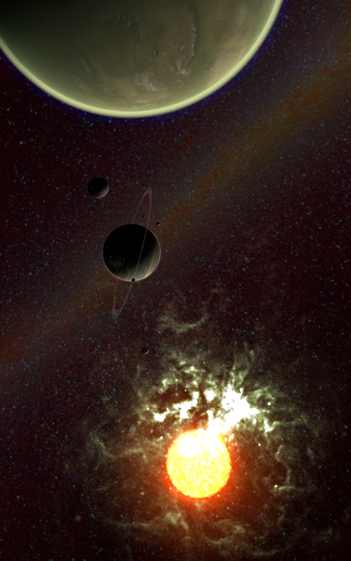 As a star gets older - its tempreture raises and the diameter extends out to enormous size. Now you will call it a red giant. A saturn-like planet with many big moons and far away placed from the star will heat up and allows for some millions of years a ecosystem to evolve. But this could soon have a harsh end!