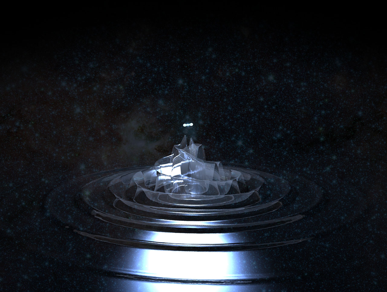 When neutron stars collide, an effect comes into limelight. The space-time gets ripples and sometimes huge waves. This picture shows two of these stellar corpses in the moment of fusion.