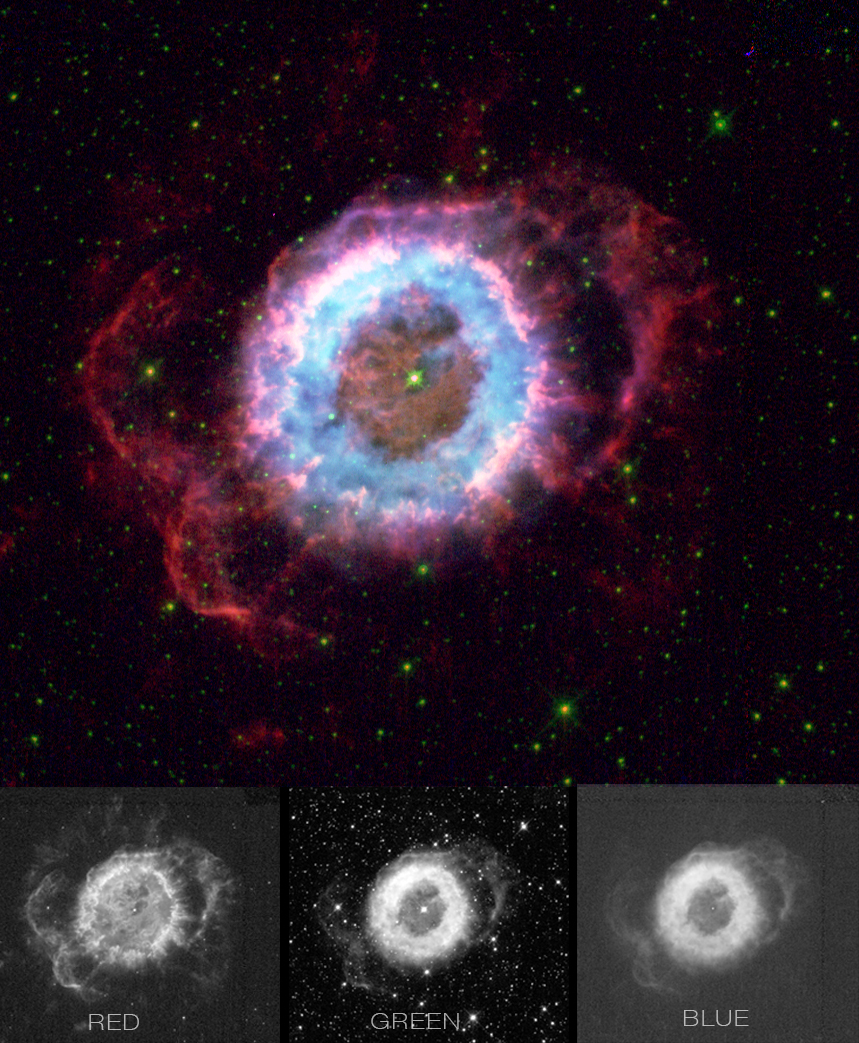 In inset you can see the original images i downloaded and cropped from Hubble Legacy Archive, the Red is actually Green and Green is actually Red.