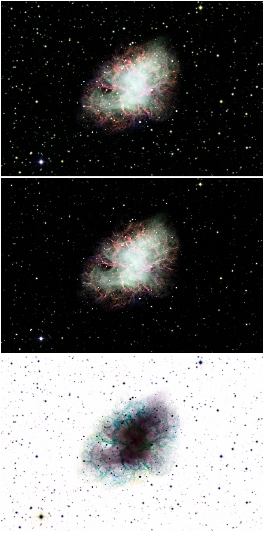 Bottom image: this is just the original image inverted, which really highlights the 'nebulous tendrils' that almost look like blue blood veins running through the clouds.