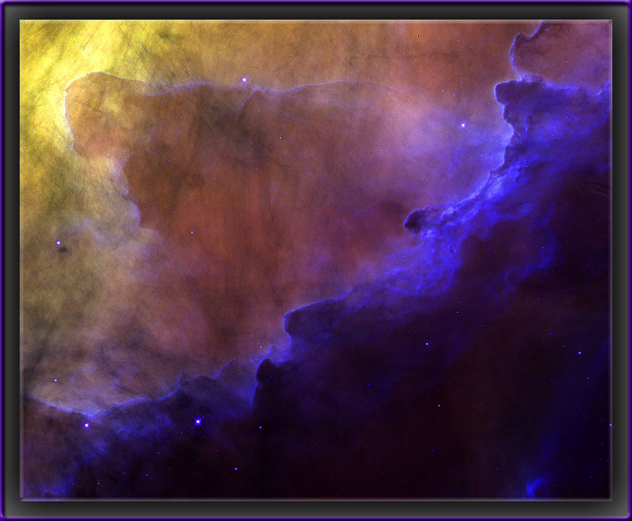 As a visual artist who has been a great appreciator of the incredible beauty and clarity of the images from the Hubble Telescope (after the successful Service Mission 1), it is fantastic news to find out that a photoshop plug-in has been recently made available to the public which allows anyone with a computer, photoshop and modem to work with the raw data files from Hubble. Then to find out that the exquisitely delicate colors in the Hubble images were subjective and not scientifically "etched in stone" so to speak, was equally exciting! This is my first attempt at using the FITS Liberator from the educational data sets. Looking forward to downloading directly from Hubble/ESO archive and creating my own colorful variations on astronomical objects and nebulae.